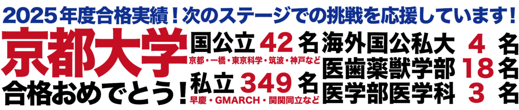 2025年度滝川第二高等学校卒業生224名は、最難関の京都大学をはじめ、一橋大学・東京科学大学・筑波大学・神戸大学などの難関国公立大学に現役で合格しました。他にも国公立大学に42名、難関の早慶・GMARCH・関関同立などの私立大学に349名、海外大学から医学部まで、多種多様な進路実績となりました。例年より、卒業生数が少ない中で、高い合格実績をあげています。みなさん合格おめでとうございます。